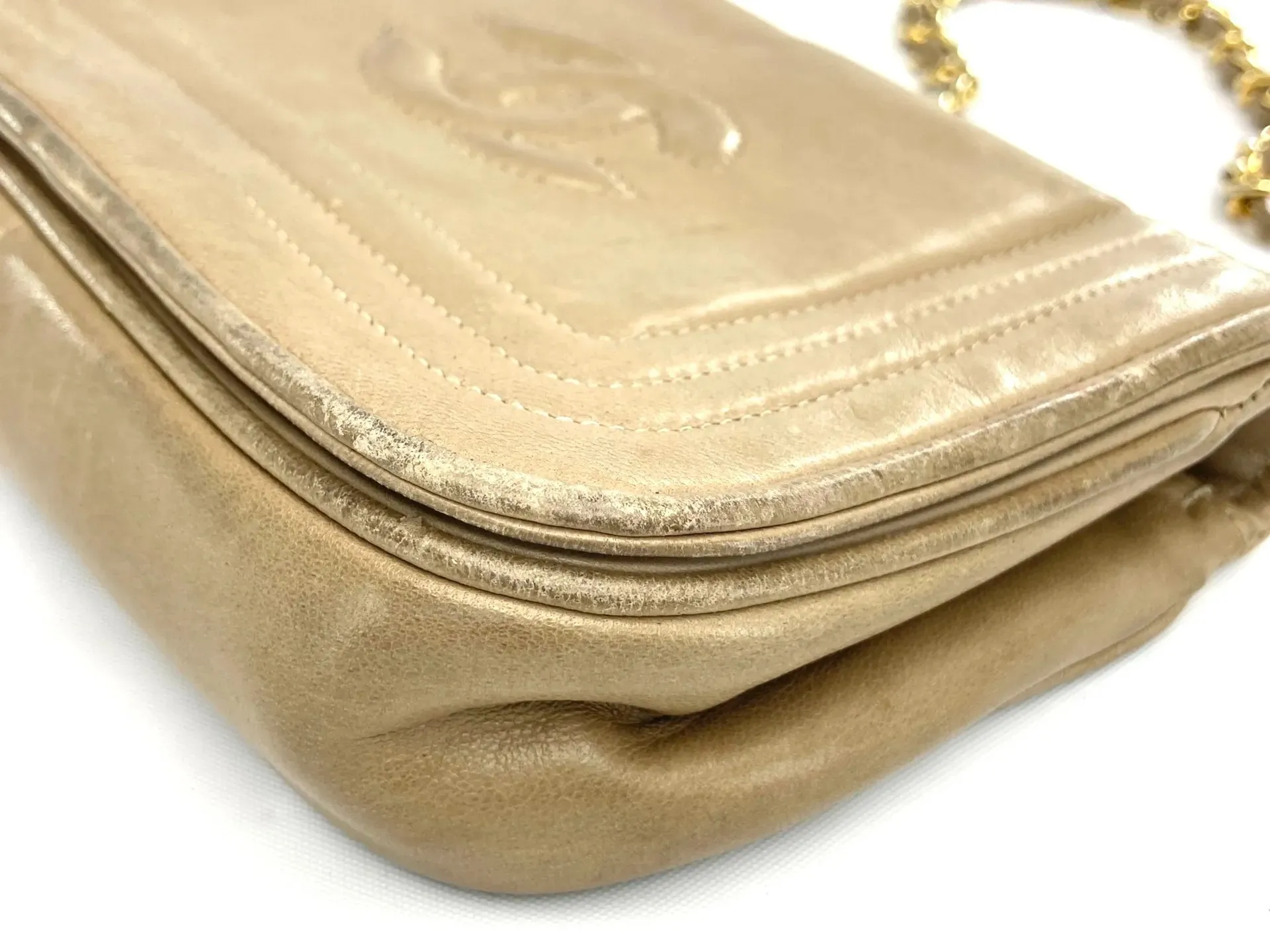 という繊細なバランスが求められます。また、チェーンショルダーの重みが縁に負担をかけ、部分的に割れが進行しているケースも少なくありません。