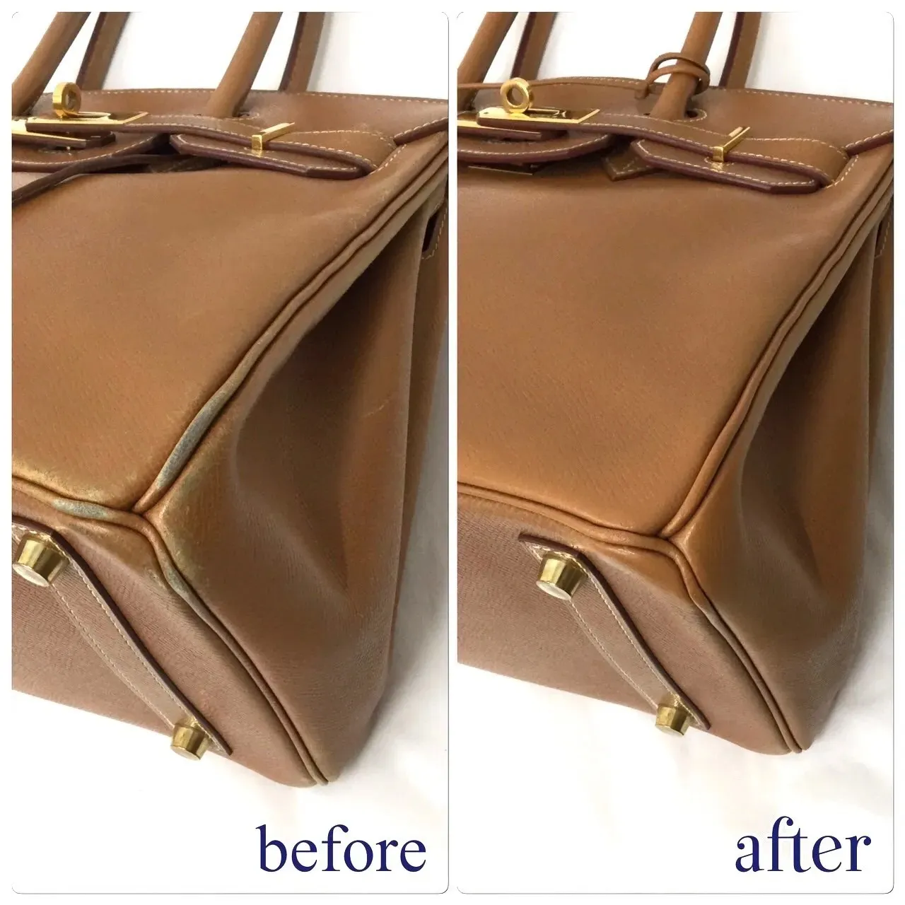 を行い、「修理したことが分かりにくい」仕上がりを重視しています。エルメスの場合、見た目以上に触ったときの質感再現が重要となります。